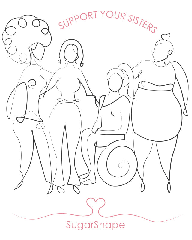 Bei SugarShape ist "Support Your Sisters" die Botschaft, die wir in die Welt hinaustragen wollen. Support Your Sisters steht dafür, Liebe anstelle von Missgunst zu verbreiten und füreinander einzustehen. Wir wollen unseren Schwestern Solidarität und Halt in allen Lebenslagen bieten, insbesondere in einer Welt, in der Frauen immer noch gegen Vorurteile und Diskriminierung kämpfen müssen.
