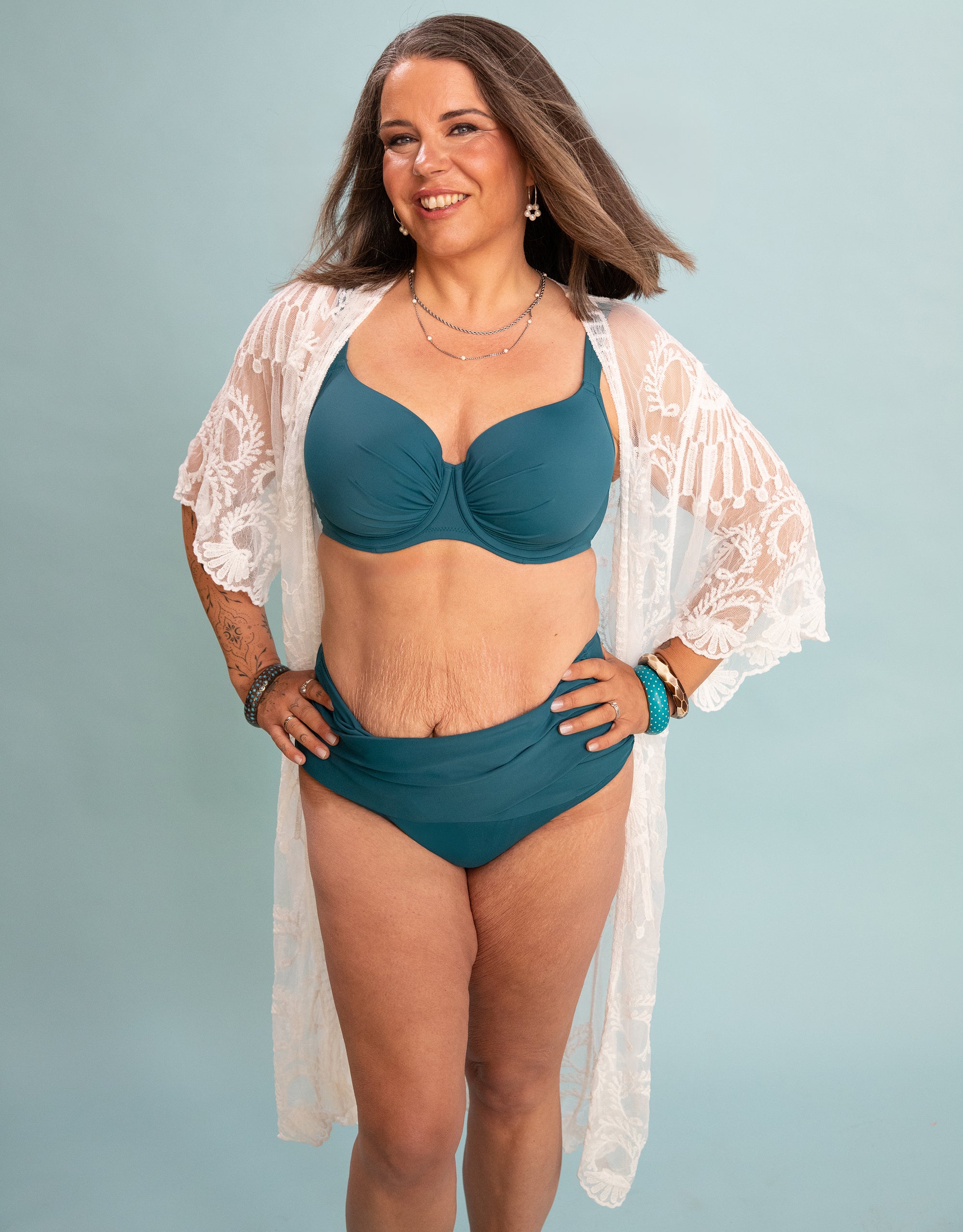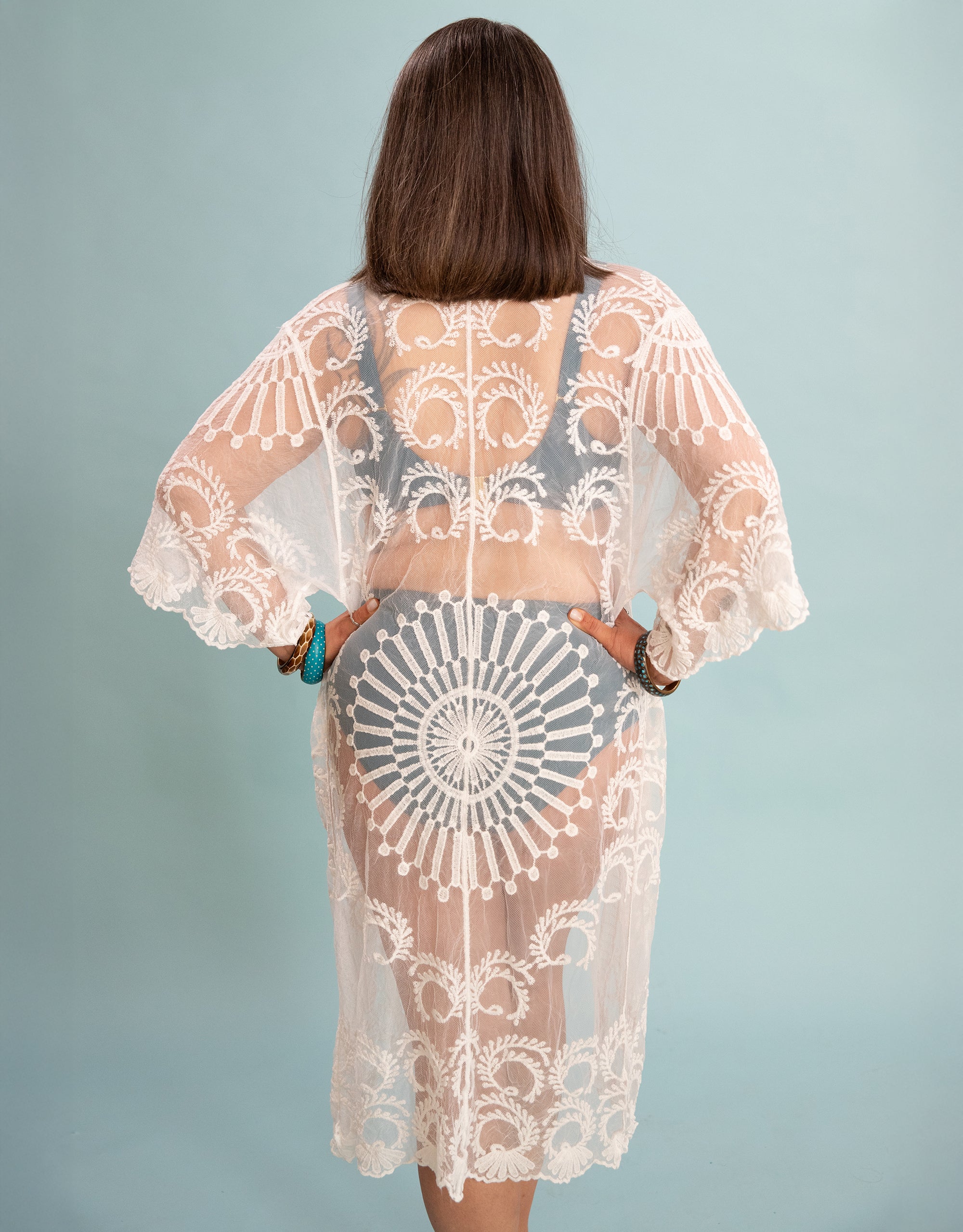 Whether on the beach, at the bar or on the way to the sun lounger, our Beach Kimono Mambo Long Ivory is perfect for hot days in style. The long, flowing silhouette, cropped sleeves and fine embroidery create a clean look.