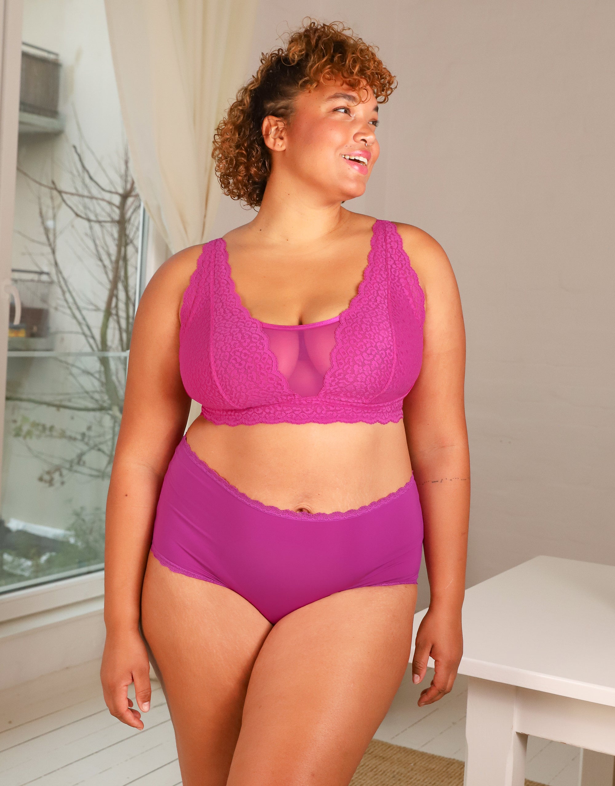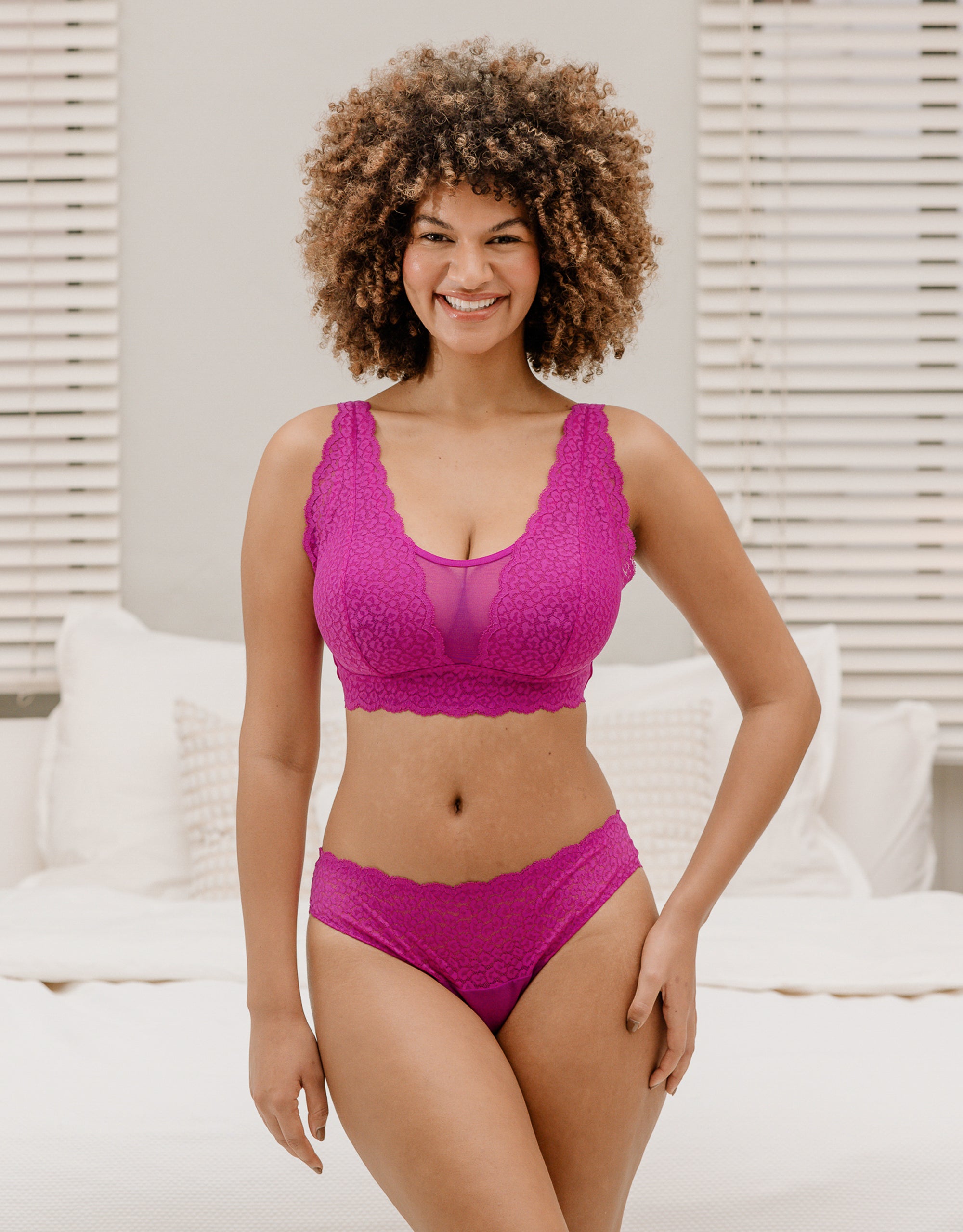 The combination of leopard-print lace and transparent mesh brings out your wild side and makes Elva a real eye-catcher. Whether styled underneath or as a top.