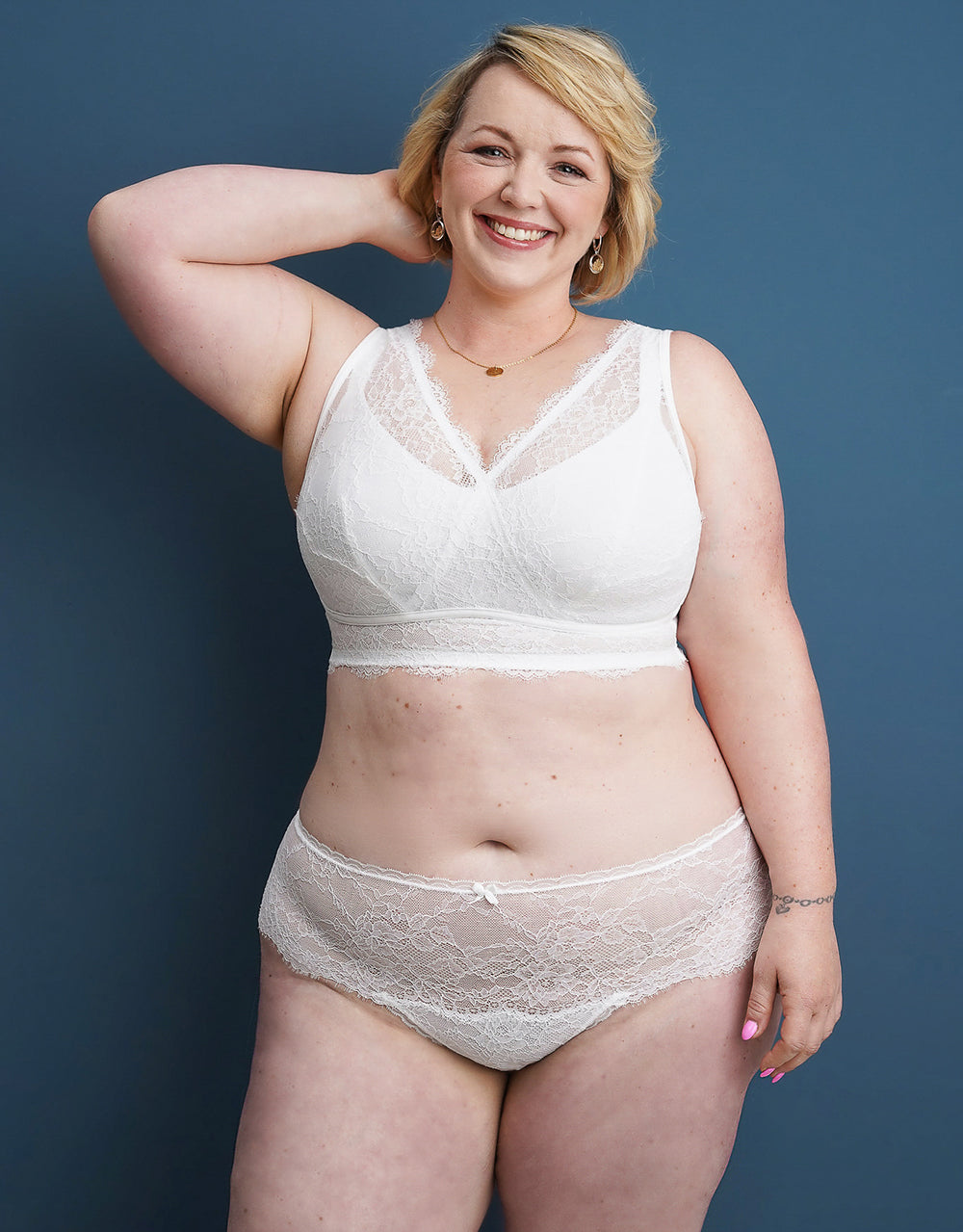 The Emilia panty is made entirely from soft eyelash lace, which, together with the elastic lace at the waistband and leg openings, ensures a high level of comfort.